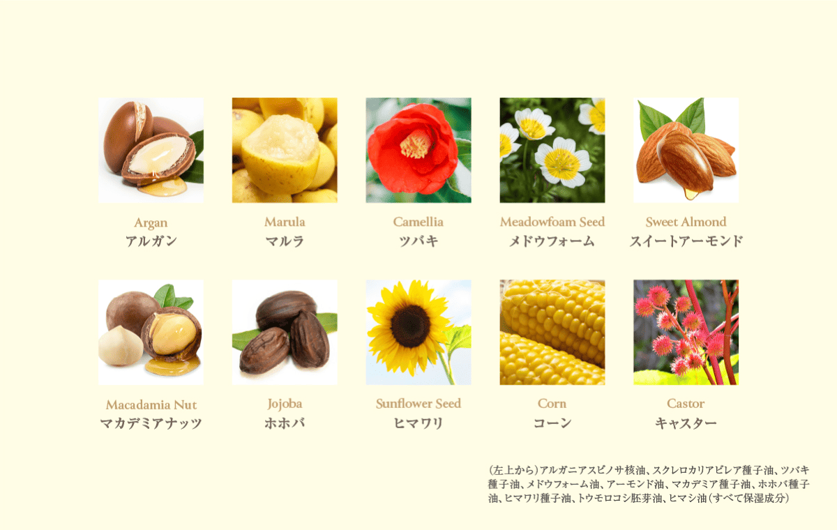 アルガンオイル※1ホホバオイル※2マルラオイル※3など、